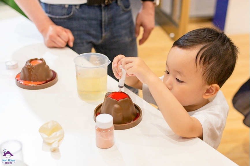 小朋友现场体验自制灭火器、火山爆发等实验